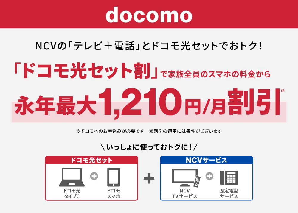 NCVなら、スマホ各社の割引が受けられます。