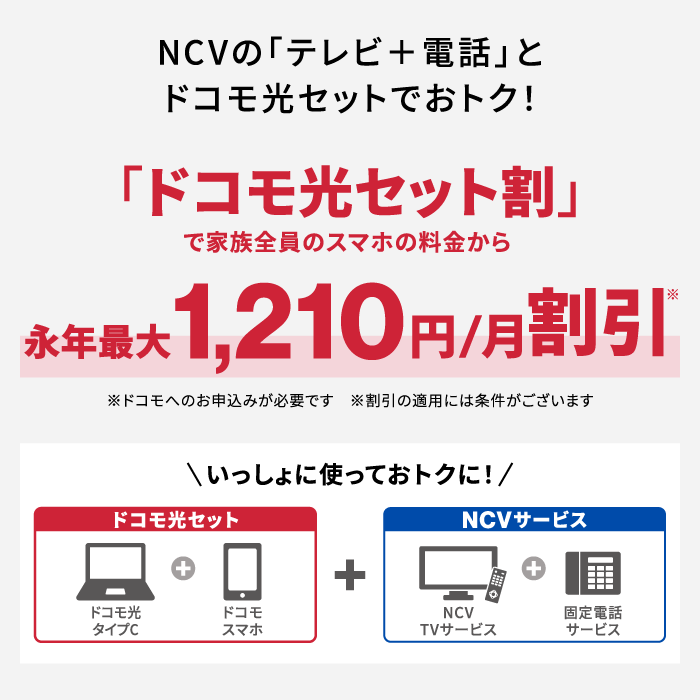 ※ケーブルラインをご利用いただくには、NCV光インターネット(月額料金4,950円)のご利用が必要です。